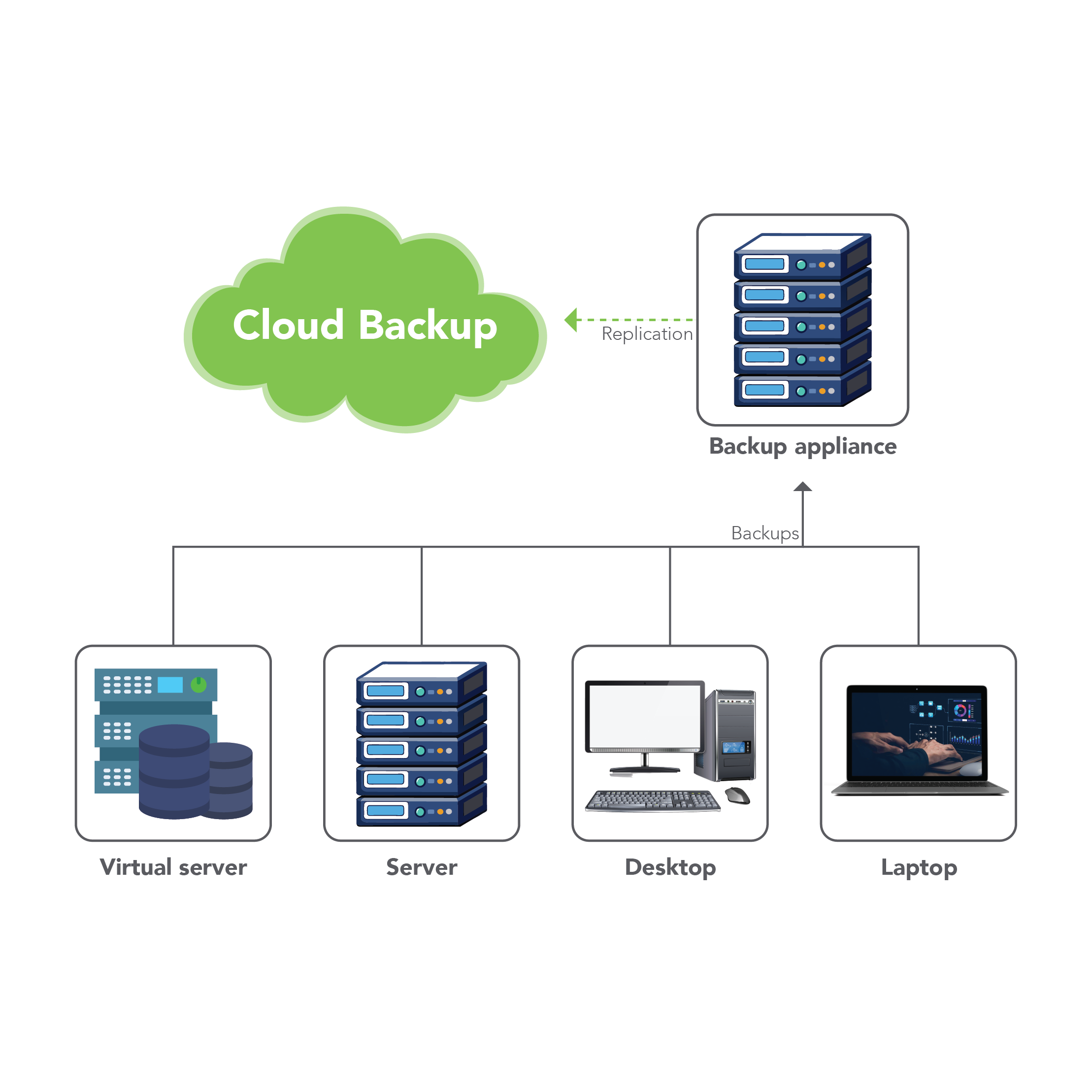 A backup solution is a computer program or service that creates copies of files, databases, or entire computers to protect them in case of data loss: